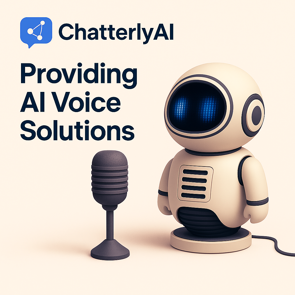 ChatterlyAI provides intelligent AI solutions designed to make your business more efficient. We specialize in AI voice agents powered by VAPI, capable of handling calls, scheduling appointments, and interacting naturally with clients. Beyond voice, we also manage simple automations such as reminders, follow-ups, and task notifications, freeing your team to focus on higher-value work. Getting started is simple: integrate your systems, let our AI manage the repetitive tasks, and scale your operations with confidence. Our solutions are flexible, professional, and built to grow with your business.